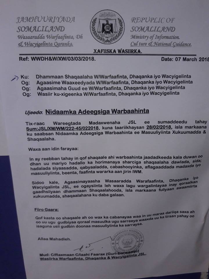 Amaawiir Cusub oo Wasiir Guri-barwaaqo Duldhigay Shaqaalaha Warbaahinta