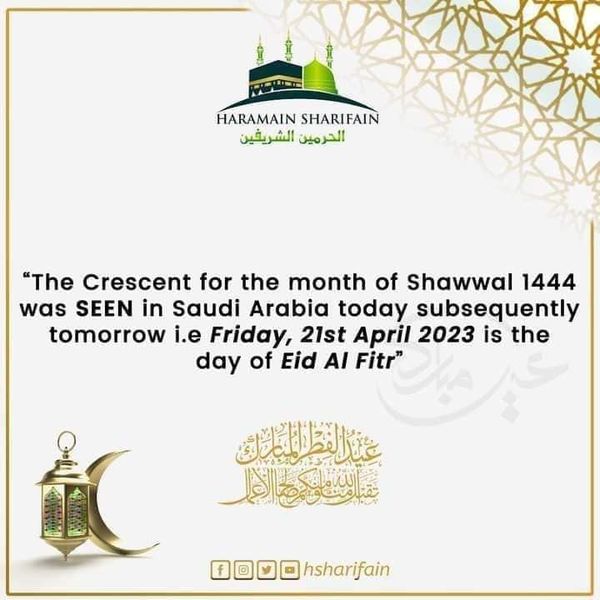 Dawlada Sucuudi Carabiya ayaa goordhaweyd ku dhawaaqday inay Maalinta beriya Jimce ah tahay maalinta koowaad ee bisha Shuwaal Sidaas darteedana ay tahay Ciidulfidri