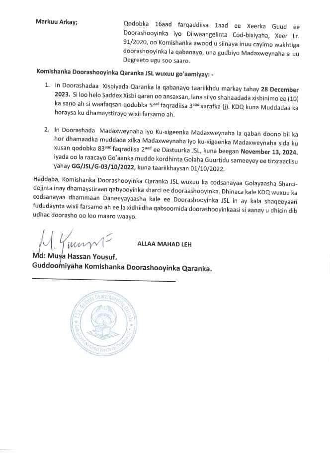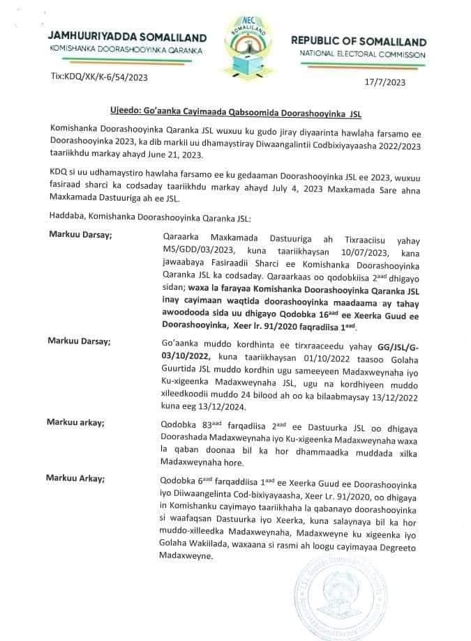 Gudida Doorashooyinka Qaranka Somaliland oo Soosaaray Xiliga La Qabanayo Doorashada Ururada Siyaasada Iyo Doorashada Madaxtooyada oo Ka Dambayn Doonta