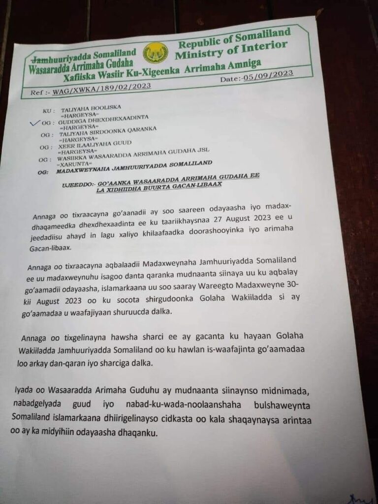 Xukumada Somaliland oo War Muhiima Kasoo Saartay Jabhada Buurta Gacan Libaax.