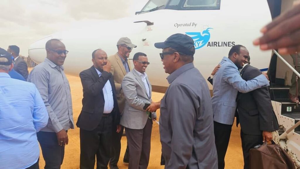 Laascaanod(Berberatoday.com)-Wafdi Balaadhan oo ka kooban 50 Siyaasi kala duwan Xildhibaanda laba gole Kuwa oo ka yimi Muqdisho oo katirsan Dawlada Federaalka Somaliya ayaa ka soo degey Garoonka Diyaaradaha ee Gambadhe ee Laascaanood. Hore waxa ugu sugnaa Laascaanood Kooxaha Xagjirka oo kasoo qulqulaya Gobolada dhexe ee Somaliya.