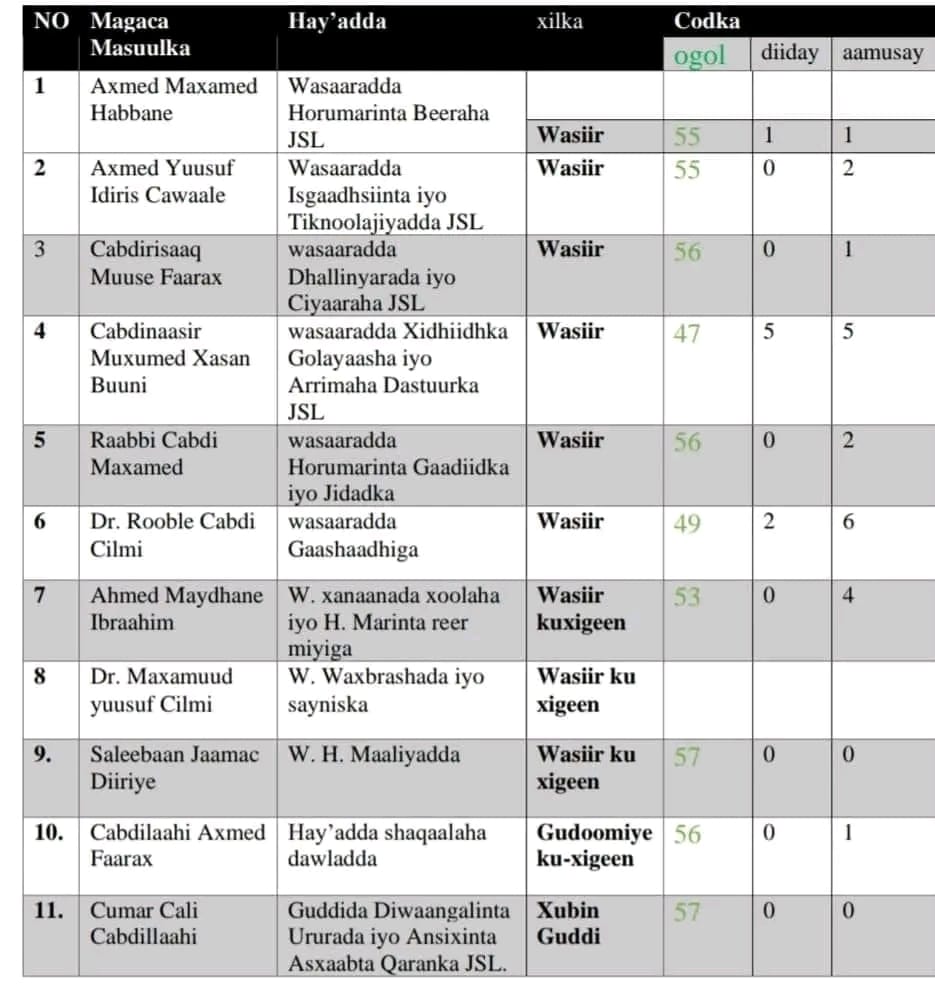 Golaha Wakiilada Somaliland oo Ansixiyay Wasiiro Iyo Masuuliyiin Kaloo Madaxweyne Muuse Biixi Dhawaan Magacaabay