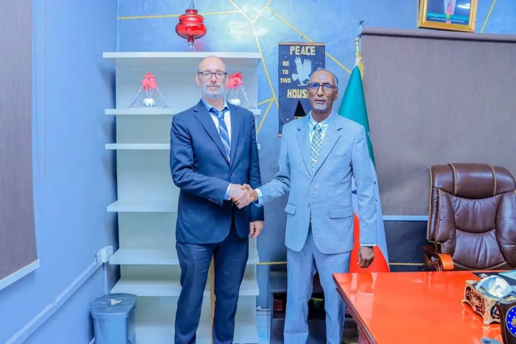 Wasiirka Arimaha Gudaha Iyo Amniga Qaranka Somaliland Cabdalle Maxamed Carab oo Xafiiskiisa Kusoo Dhaweeyay Madaxa Arimaha Bina,aadanimada ee Qaranada Midoobay Mr. George Conwa