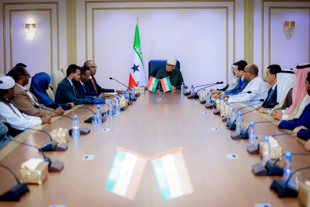 Madaxweynaha Jamhuuriyadda Somaliland Mudane Cabdiraxmaan Maxamed Cabdilaahi (Cirro) ayaa Qasriga Madaxtooyada ku qaabilay wefti ballaadhan oo ka socda Golaha Sare ee Dhaqaalaha Carabta iyo Afrika (Supreme Council for Arab-African Economy) oo booqasho rasmi ah ku yimid Jamhuuriyadda Somaliland.