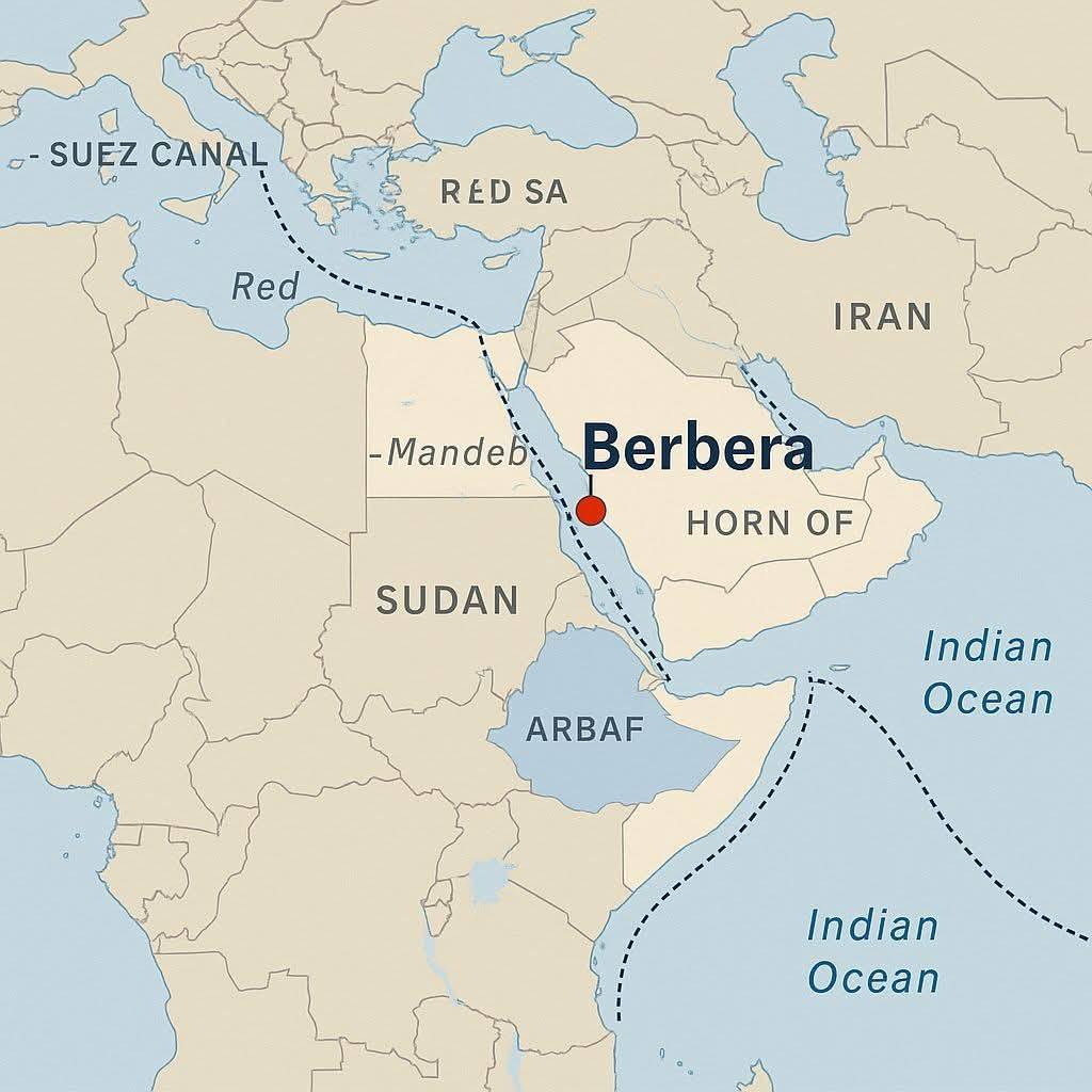 – Berbera waxay ku taallaa badda Cas iyo badweynta Hindiya meel u dhow marin muhiim ah oo mara maraakiibta caalamiga ah.