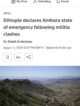 Dalka Itoobiya oo Xaalad Deg Deg Ah La Galiyay Kadib Xaalad Dagaal oo Kasoo Cusboonaatay Kililka Amxaarada